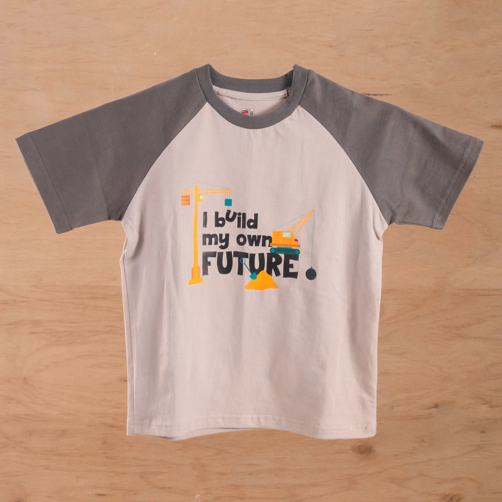 Inspire confidence and creativity with this motivational short sleeve t-shirt for kids. Featuring a bold “I Build My Own Future” print with fun construction-themed graphics, this shirt is perfect for little dreamers and doers.